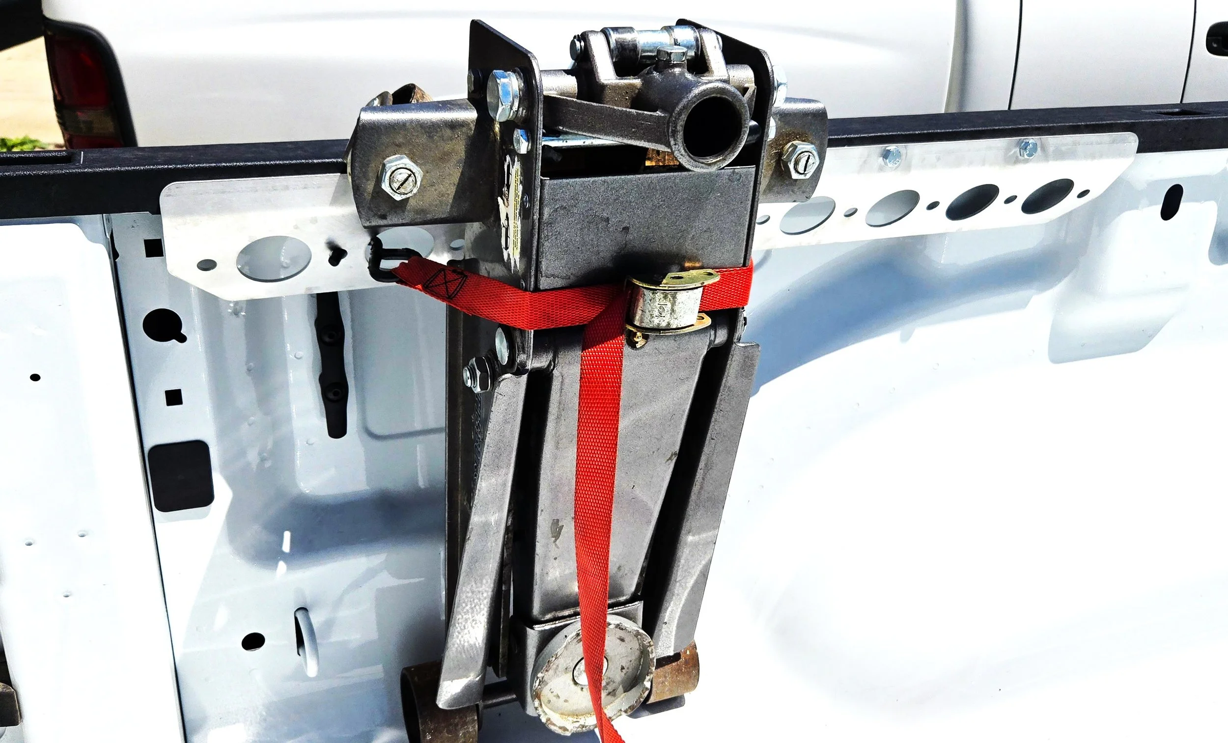 Floor jack mount for easy storage in the bed of your truck